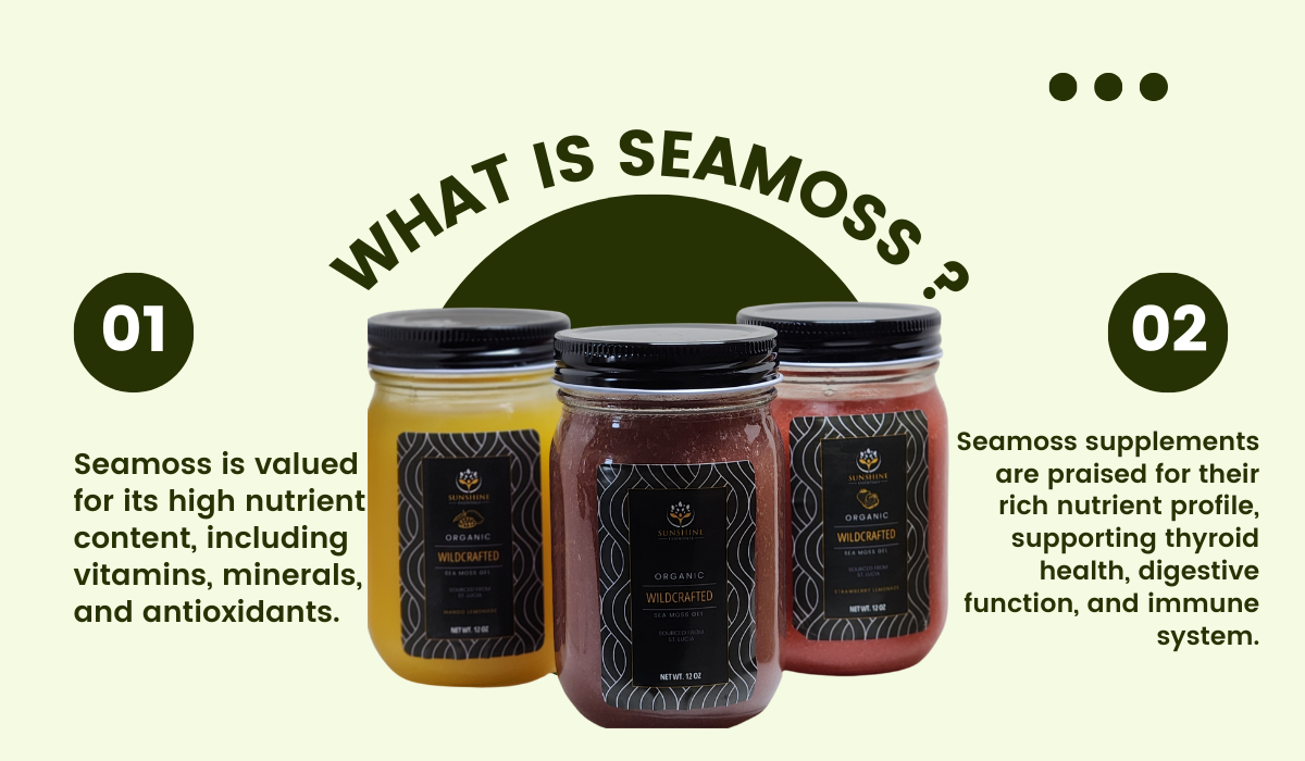 Seamoss is rich in essential nutrients such as iodine, iron, and potassium, which can support thyroid function, boost the immune system, and improve skin health.
